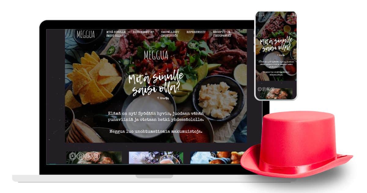One of the special features of the Meggua site is the customized category icons. Attention has also been paid to the search functions of the recipe and information bank. The appearance is entirely built according to the layout designed by Kreetta herself. It’s worth taking a closer look at the site’s cookie notification, as it is not made in the traditional way.