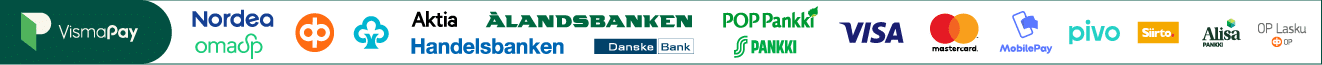 Verkkokaupan maksuvälittäjänä toimii Visma Pay (Paybyway Oy, y-tunnus 2486559-4), joka on rekisteröity Finanssivalvonnan ylläpitämään maksulaitosrekisteriin. Maksamiseen siirrytään Visma Payn verkkopalvelun kautta ja tiliotteella ja laskulla maksun saajana näkyy Visma Pay tai Paybyway Oy. Visma Pay välittää maksut verkkokauppiaalle. Maksaminen on turvallista, sillä kaikki maksutapahtumaa koskevat tiedot välitetään salattua yhteyttä käyttäen niin ettei kukaan ulkopuolinen taho näe maksutapahtuman tietoja.